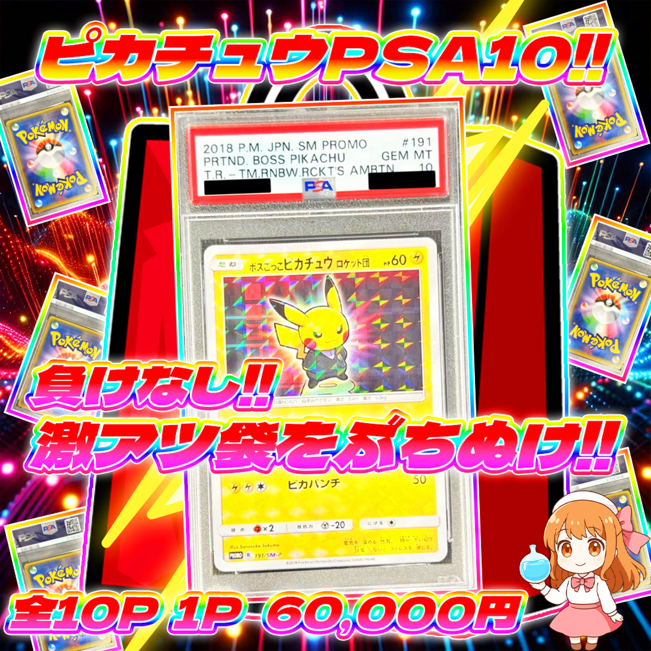 ボスごっこピカチュウロケット団PSA10入り×1