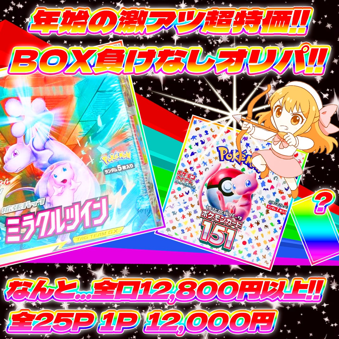 1/18 25p年始の激アツ超特価!BOX負けなしオリパ#全口12800円以上BOX