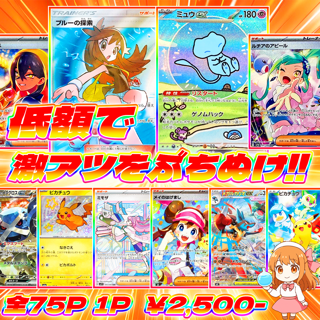 ポケモン、ワンピースを主に取り扱いしているオリパ屋「アローオリパ」です。